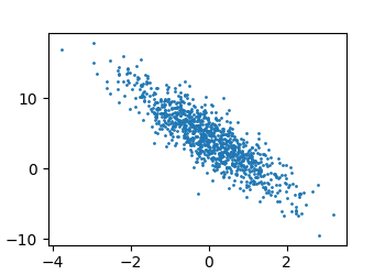 我们使用预设的权重 w = [ 2 , − 3.4 ] T w = [2,-3.4]^{\mathrm{T}} w = [ 2 , − 3.4 ] T 、b = 4.2 b = 4.2 b = 4.2 和噪声 ϵ \epsilon ϵ 生成数据集的特征 X \boldsymbol{X} X 及其目标 y \boldsymbol{y} y :